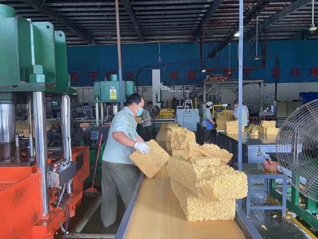 金隆橡膠加工分公司包裝車間正抓緊全乳膠的產(chǎn)品包裝生產(chǎn)。